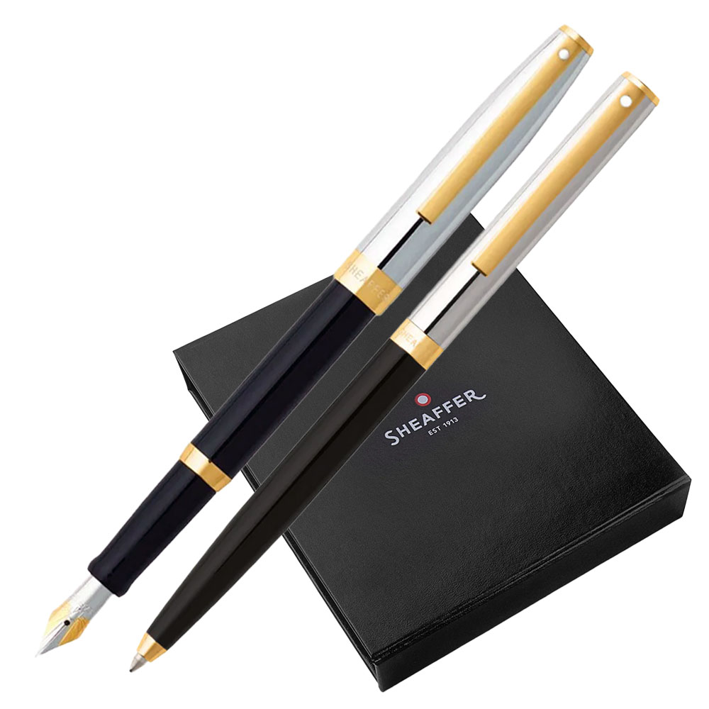 Sheaffer Sagaris Glossy Black w Chrome GT set Ballpoint x Fountain pen