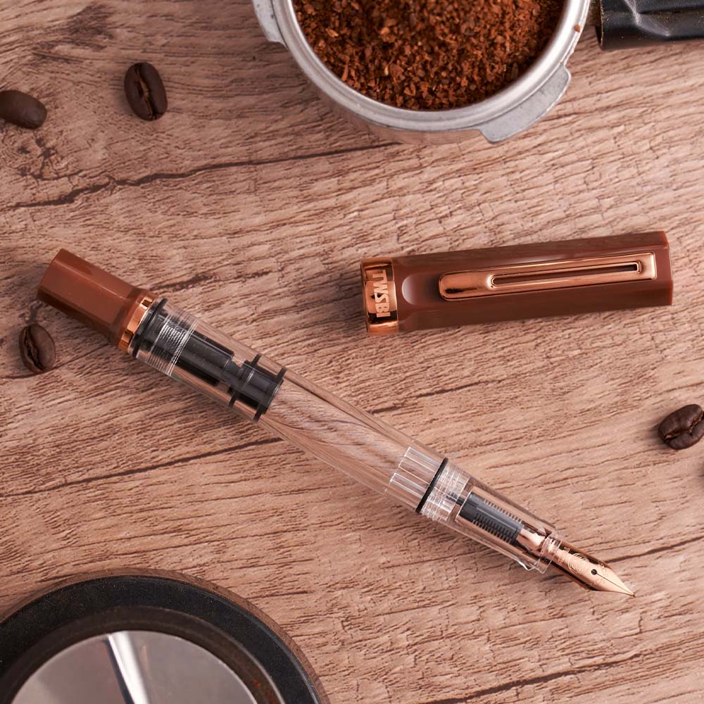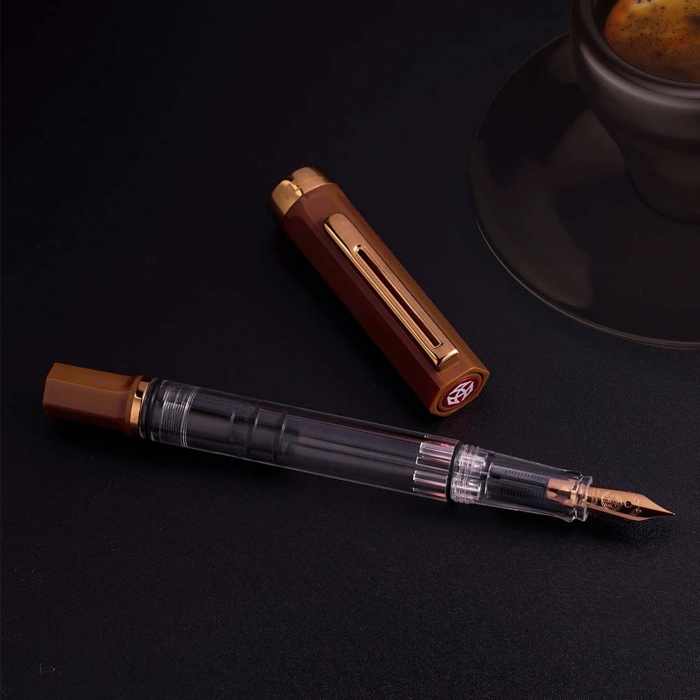 TWSBI ECO Espresso Bronze Fountain pen. Πένα με μηχανισμό περιστρεφόμενου εμβόλου σε αρκετά προσιτή τιμή και άριστη γραφή. Ατσάλινο πενάκι μήκους 18mm και σώμα διαφανές κρυστάλλινο από υψηλής ποιότητας ρητίνη με μεγάλη χωρητικότητα μελάνης 1.7ml