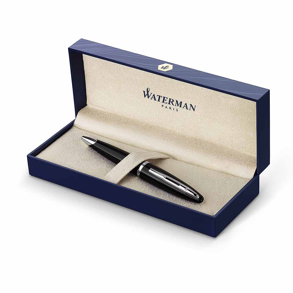 Waterman Carene Black CT Ballpoint. Δεν είναι τυχαία η ονομασία της σειράς σε “Σκάφος”. Είναι εμπνευσμένη σχεδιαστικά από τις αρμονικές γραμμές των πιο όμορφων σκαφών θαλάσσης. Η σειρά Waterman Carene είναι η κορυφαία κατηγορία οργάνων γραφής της Waterman με αρκετές χρωματικές παραλλαγές και υλικά. Επίχρυσα μεταλλικά στοιχεία, χρυσό και ασήμι χρησιμοποιούνται για την κατασκευή των μοντέλων Carène. Διατίθεται σε πένα, στυλό Ballpoint διαρκείας και στυλό Rollerball υγρής μελάνης. Οι πένες δέχονται αμπούλες και αντλία μελάνης τύπου international standard. Τα στυλό διαρκείας γράφουν μόνο με ανταλλακτικά Waterman. Τα στυλό Rollerball με ανταλλακτικά International roller. Τα όργανα γραφής Waterman Carene έρχονται στο κουτί της εταιρείας. | Δες όλα τα προϊόντα της εταιρείας | Waterman Carène